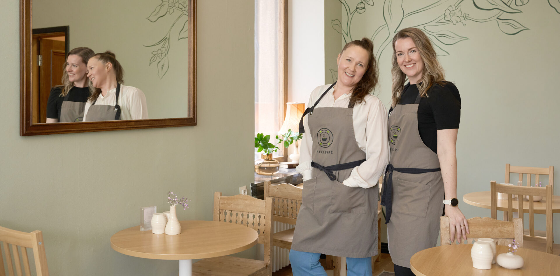 Teehuoneessa ei ole kelloja. Se on tietoinen valinta. Yrittäjät Jenni Kaski ja Leena Rajainmäki halusivat luoda paikan, jossa kiire jää ulkopuolelle.