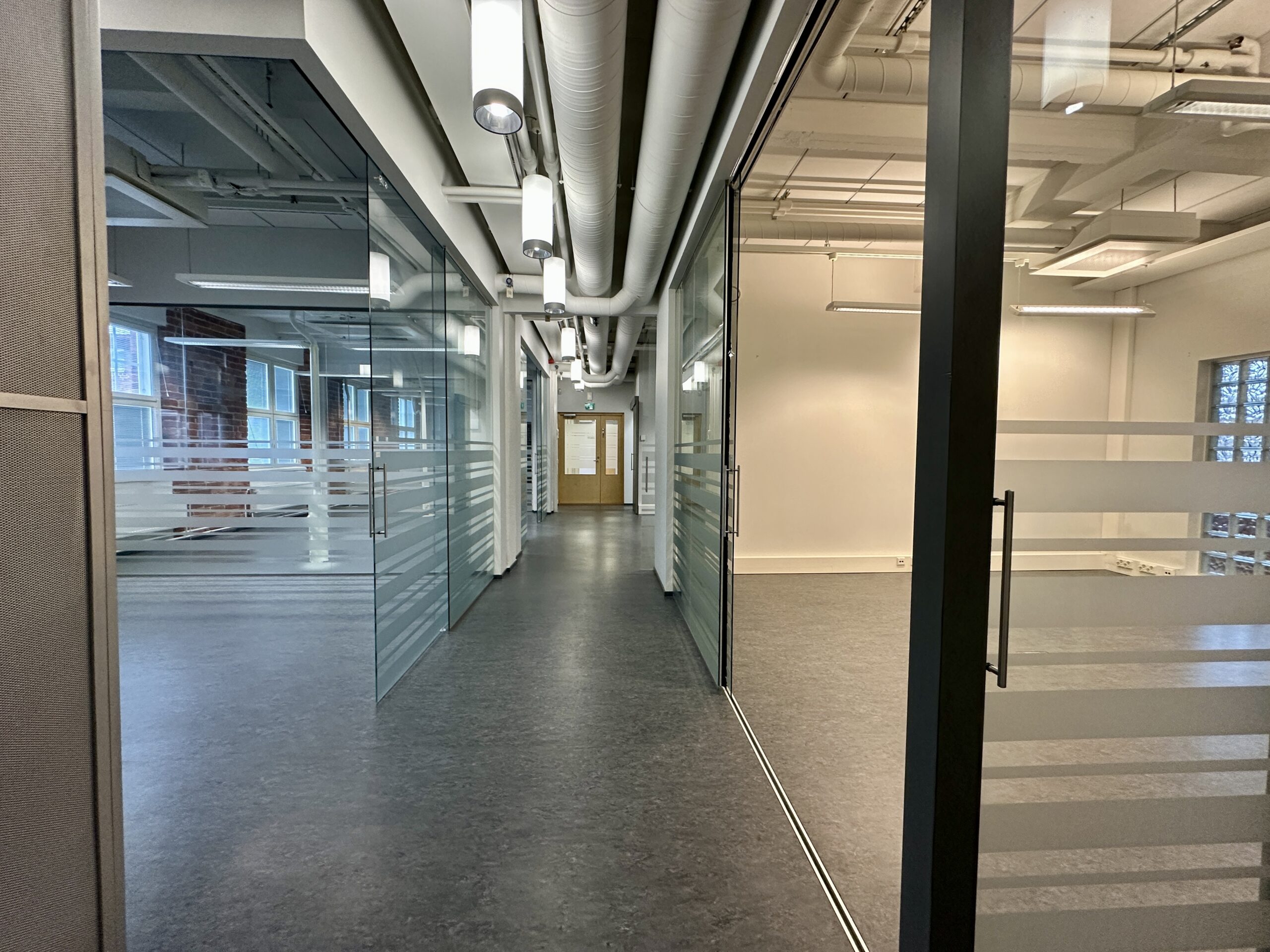 Tyylikäs toimisto Askotalon 3. kerroksessa. Väliseinät lasia, useita neuvotteluhuoneita, taukotila ja wc-tilat.