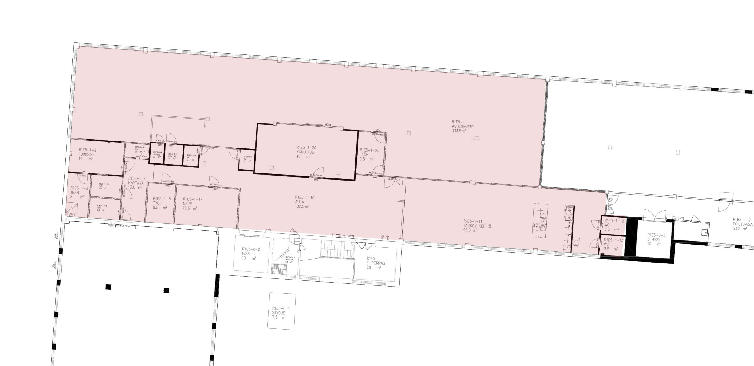 Historiallisen Askotalon 5. kerroksessa sijaitseva valoisa toimisto, pinta-ala noin 685 m2. Tilava keittiö/taukotila, useita huoneita + wc:t/suihkutilat. Hissillä pääsee kerrokseen. Toimiston ikkunanäkymät Mannerheiminkadun ja sisäpihan suuntaan. Mahdollista yhdistää tilaan R1B5-3 (245,5 m2). Talon ensimmäisessä kerroksessa kahvila- ja lounasravintola sekä eri kokoisia koulutus- ja neuvotteluhuoneita.