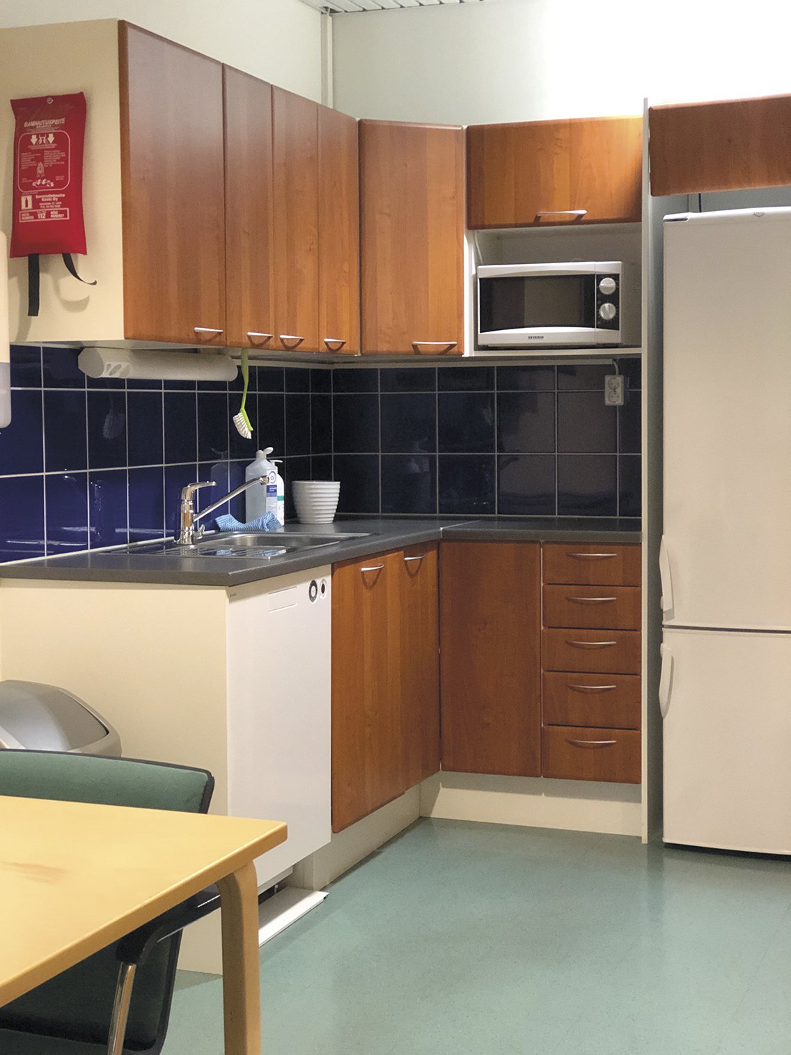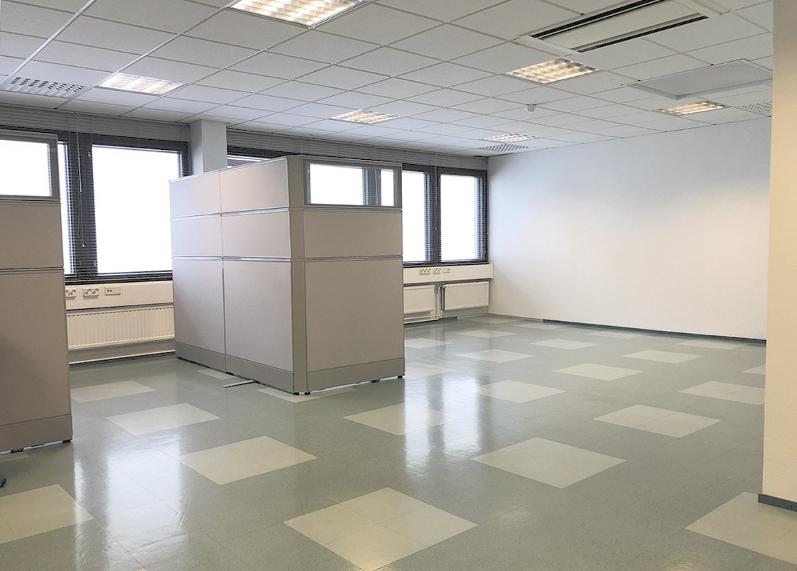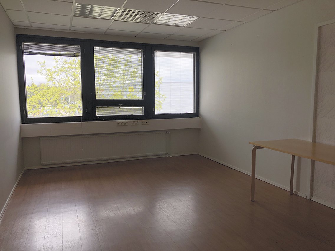 Kiinteistön 2. kerroksessa sijaitseva valoisa toimistotila, osoitteessa Iso-Paavolankatu 2, Lahti. Yhteiskäyttöinen keittiö sijaitsee käytävällä.